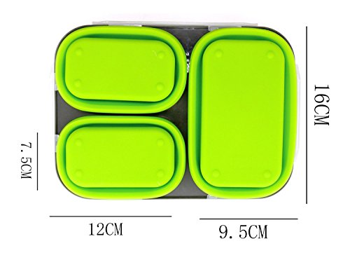 ReaLegend Scatola porta pranzo, stile bento, Gomma, Green, Collapsible Bento Box