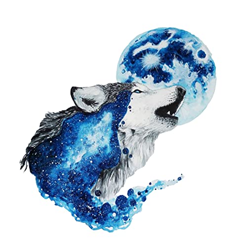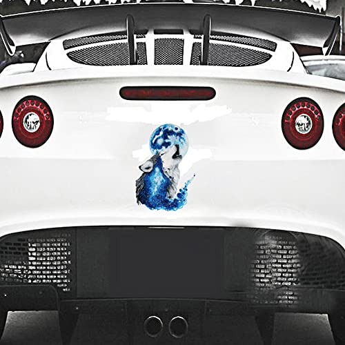 Realistic - Adesivi 3D per auto, 2 pezzi, con animali 3D, divertenti adesivi per cartoni animati, rimovibili, autoadesivi, antigraffio, cofano del motore, della carrozzeria, della luna e del lupo