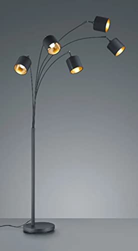 Reality Lampada ad arco Tommy R46330579, metallo, nero opaco, paralumi in tessuto nero/oro