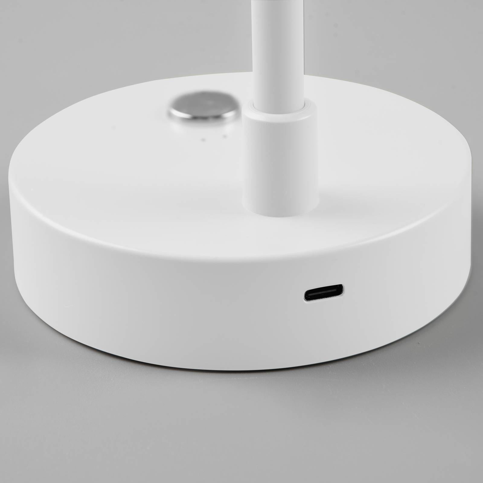 Lampada da tavolo a LED Lenny con batteria ricaricabile, funzione CCT e dimmer La lampada da tavolo a LED Lenny, alimentata a batteria, offre una luce in tre diversi colori e può essere regolata in modo graduale. L'apparecchio in metallo è dotato di una testa orientabile per portare il cono di luce nella posizione desiderata. Alla base della lampada è installato il pulsante che può essere utilizzato per impostare il colore della luce e regolare la luminosità. Viene fornita con un cavo di ricarica USB-C senza adattatore di rete - colori della luce selezionabili bianco caldo (3.000 K), luce diurna (6.000 K), bianco universale (4.000 K) - dimmerabile - batteria ricaricabile agli ioni di litio da 3,7 V e 1200 mAh - tempo di illuminazione a piena luminosità circa 1,25 ore - tempo di ricarica circa 3,5 ore