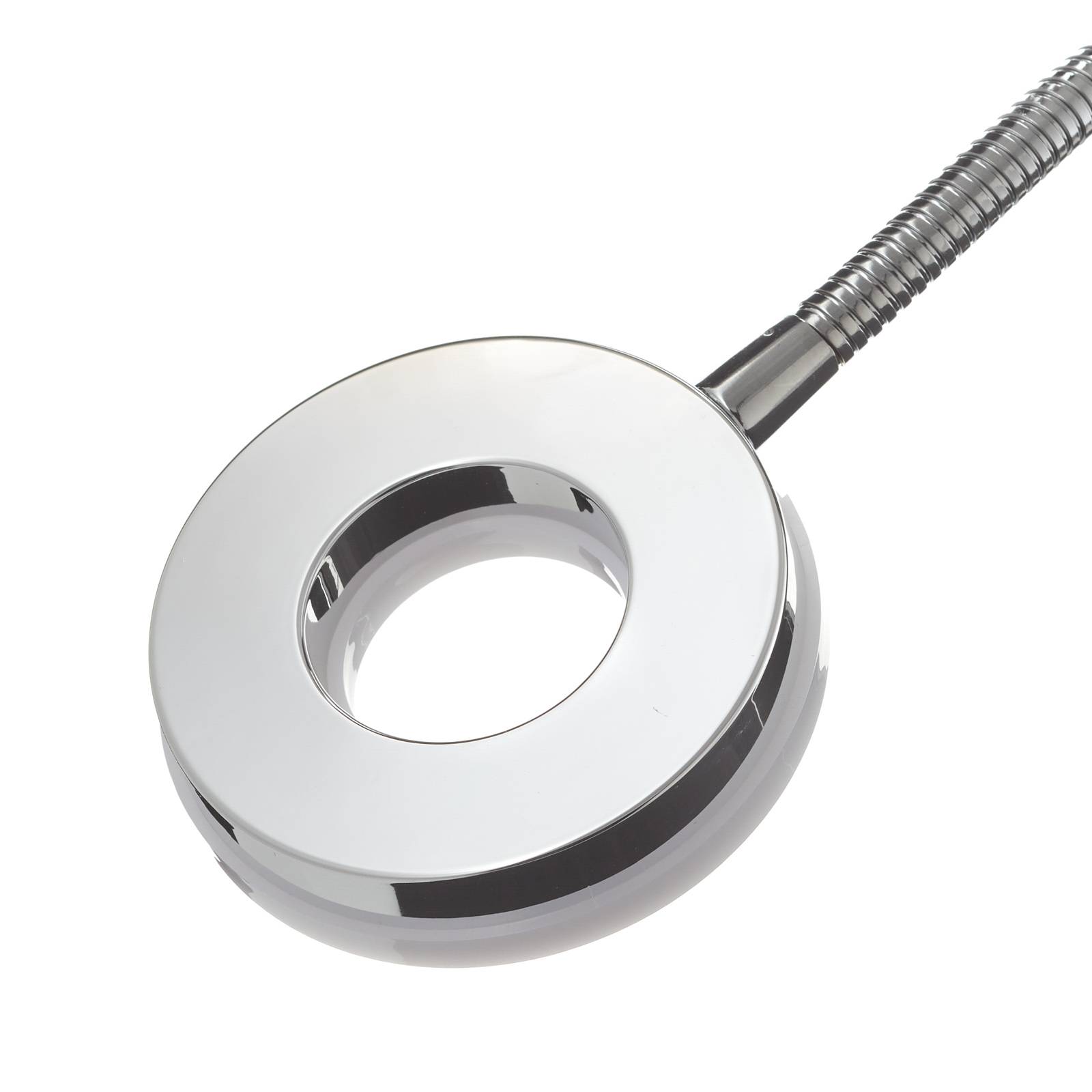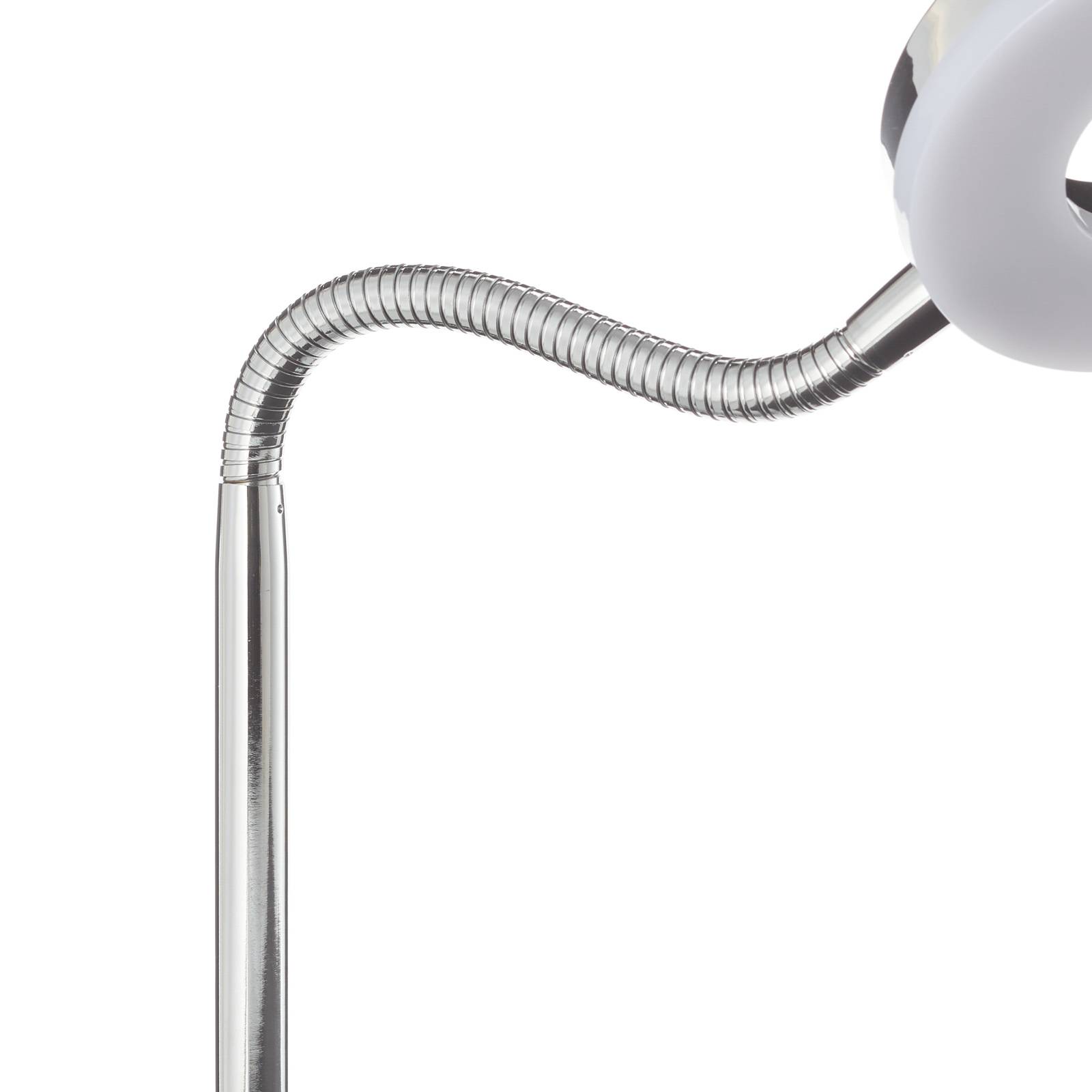 Rennes - una lampada da tavolo a LED con un tocco moderno La lampada a LED Rennes fa bella figura su quasi tutte le scrivanie. Realizzata con una struttura cromata lucida, Rennes può arricchire la scrivania con un tocco moderno. Il design rotondo del paralume si riflette nella base e, in combinazione, i due elementi formano un'unità armoniosa. La luce bianca calda del LED integrato da 4 W può essere regolata in base alle esigenze, poiché la parte superiore della struttura è regolabile in modo flessibile.