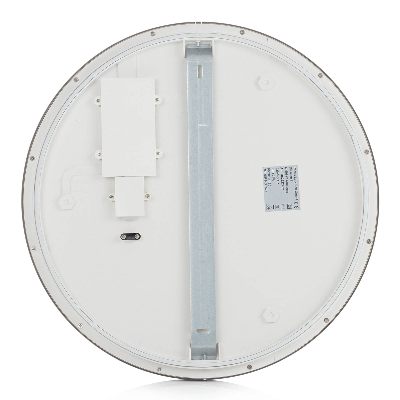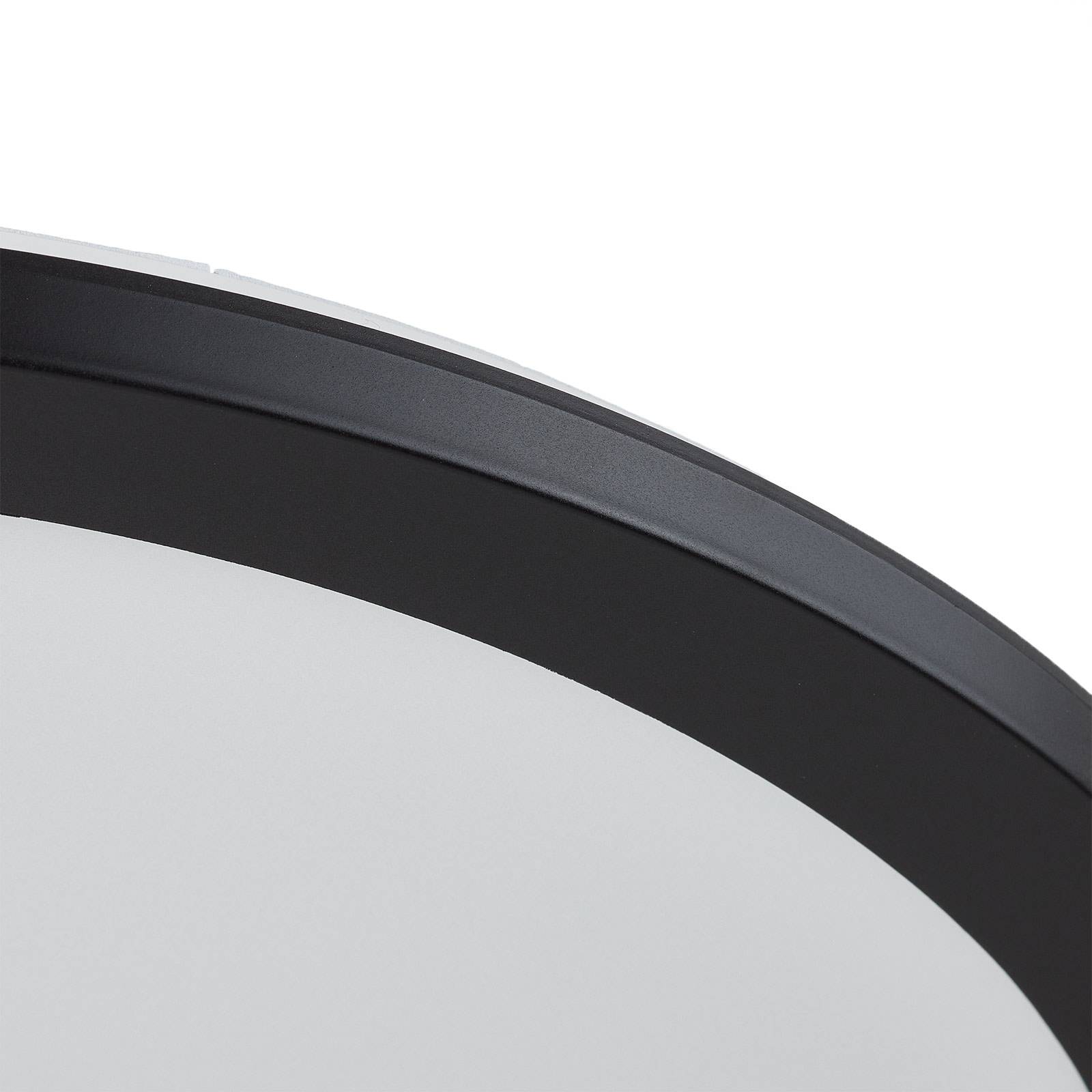 Plafoniera LED rotonda Camillus con switch-dimmer La plafoniera LED Camillus con cornice nera si può montare anche sulla parete. L'intensità luminosa si regola a tre livelli servendosi del normale interruttore. La plafoniera LED Camillus è costruita in grado di protezione IP44, compatibile anche con il bagno. I LED incorporati emettono luce bianca di tonalità calda, diffusa in modo omogeneo.
