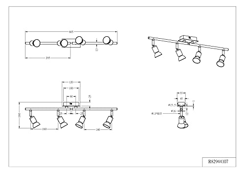 Reality Leuchten R82944107 - Sistema di 4 faretti LED, in nichel opaco, include 4 x GU10 3W LED, 230 Lm, 3000 k