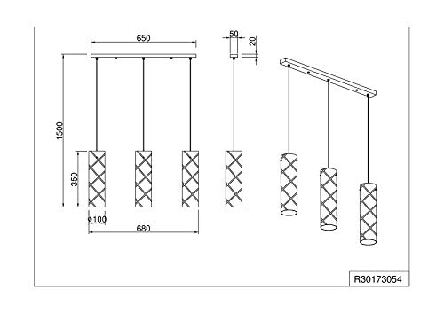 La larghezza è di 65 cm. Ogni pendolo ha un massimo di Altezza di 150 cm. Un ombrellone ha un diametro di 10 cm.