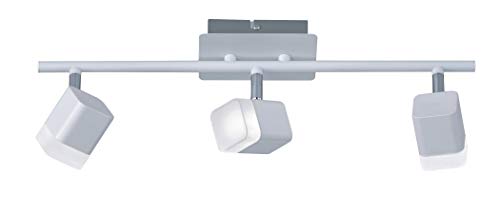 Faretti a LED roubaix, 3 luci, in bianco opaco, con paralume in acrilico bianco