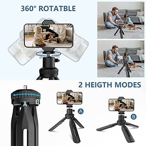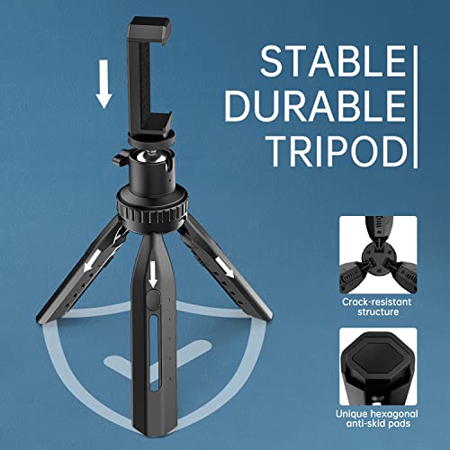 [Angolo Flessibile] Il gimbal di precisione ruotabile del treppiede da tavolo offre funzioni di panoramica a 360° e inclinazione di ±90°, che possono essere regolate rapidamente indipendentemente dal fatto che sia sopra la testa/inclinazione o paesaggio/ritratto. È adatto per scattare foto, scattare selfie, trasmettere in diretta, outdoor, escursioni, pic-nic, campeggio, viaggi, riprese video, registrare tiktok e aprire videoconferenze, ecc.