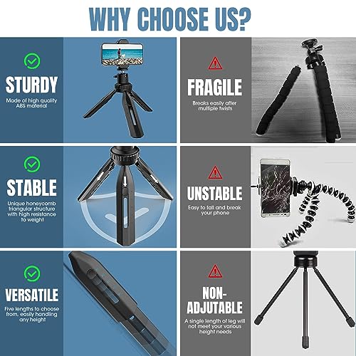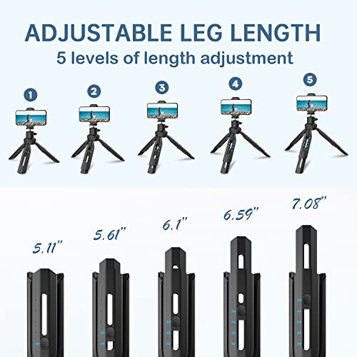 ✅ [Regolazione Precisa] Il treppiede RealPlus può essere commutato tra due altezze minime ruotando il disco di base e i suoi 5 fermi su ogni gamba del supporto forniscono un angolo di visione preciso e stabile (regolazione telescopica tra 5,11 e 7,08 pollici). Questo design consente agli utenti di modificare in modo flessibile l'altezza del tripod in base all'altezza, alle abitudini, agli scenari di utilizzo e persino alle dimensioni dello spazio libero sul desktop.