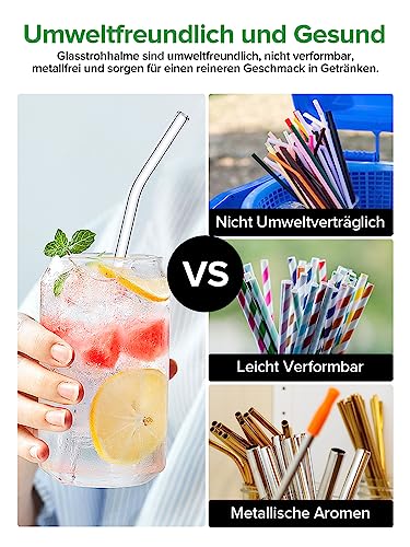 【Set di cannucce di vetro riutilizzabili】 Questo set contiene 7 cannucce di vetro e 2 spazzole per la pulizia, 5 cannucce piegate con un diametro di 10 mm di larghezza e 2 cannucce dritte con un diametro di 12 mm di larghezza, che sono leggermente più larghe per un'esperienza di consumo più fluida. Le lunghezze di 20 cm e 21,5 cm sono adatte per l'uso in una varietà di contenitori. Le cannucce di vetro sono indeformabili, durevoli e possono essere utilizzate più volte.