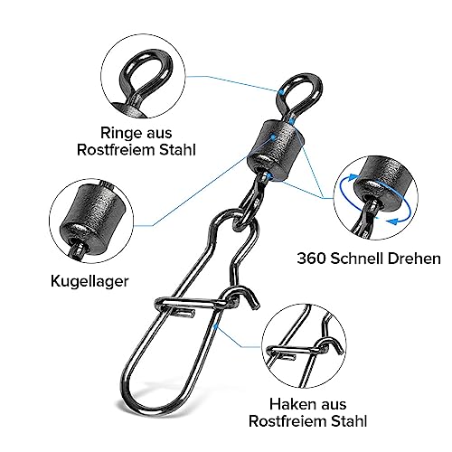 Rotazione ad alta velocità: con una delicata rotazione a 360°, l'esca galleggia come un vero pesce e attira più pesci. La rotazione regolare previene efficacemente le linee attorcigliate e aggrovigliate.