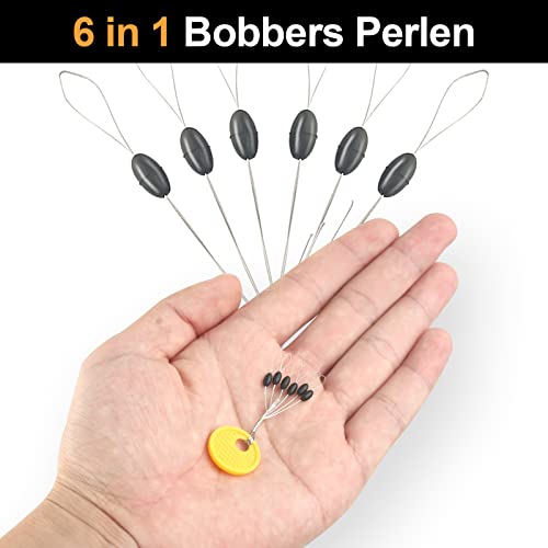 【6 in 1 galleggianti da pesca si ferma】Con il suo design 6 in 1 e le perle di tappi in gomma nera di forma ovale, è leggero e facile da trasportare, il che lo rende particolarmente adatto per essere riposto.