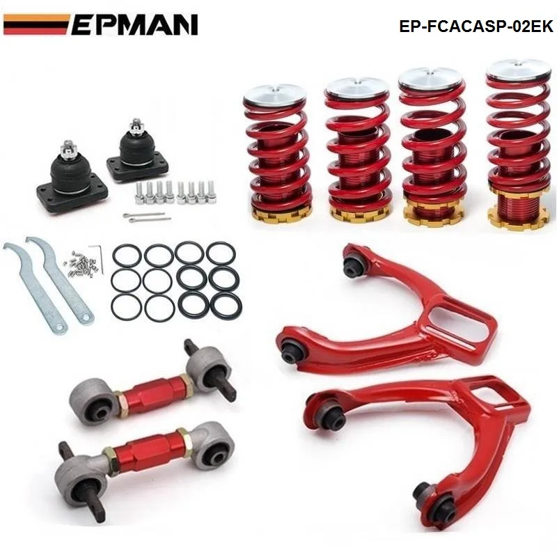 Rear Lower Control Arms+ Front Camber Kits+Lowering Coil Springs Red (Fits For Honda Civic) EP-FCACASP-02EK