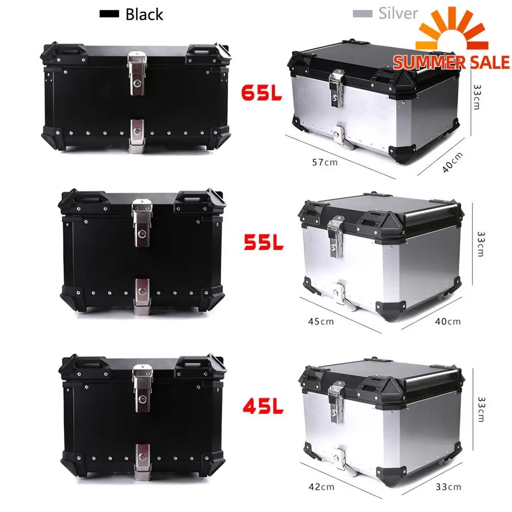 45L 55L Rear Trunk Storage Luggage Helmet Box Toolbox Travel Tool Case Tail Key Lock Removable Waterproof Universal Motorcycle