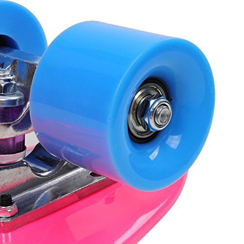 ReaseJoy Mini Cruiser Skateboard Complete Deck 22" Standard Retro Style Plastic Board with Super Smooth PU Wheels Fuxia