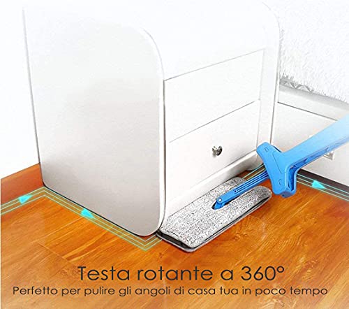 Mocio di ultima generazione con doppio lato e design "mani pulite". Un vero amico per la pulizia domestica, questa scopa ti aiuta a pulire facilmente e in pochissimo tempo ogni angolo della casa grazie alla sua testa rotante di 360°.