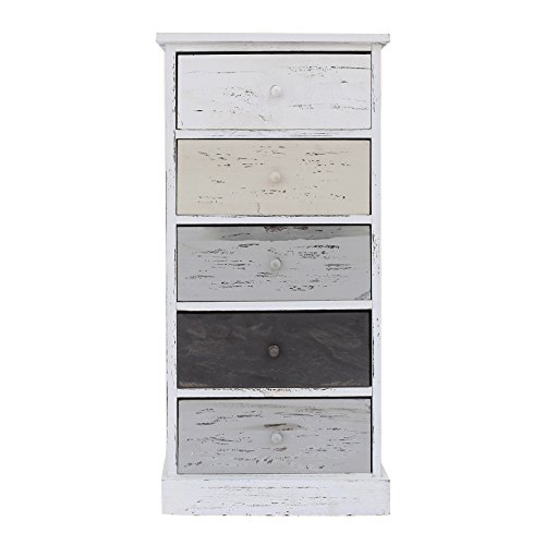 Rebecca SRL Cassettiera Comodino 5 Cassetti Natural Legno Paulownia Bianco Beige Grigio Vintage retrò Camera Bagno (cod. RE4400)