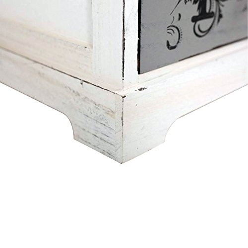 STILE VINTAGE DAI RICHIAMI SHABBY: La lavorazione decapata ed i colori tenui conferiscono all'armadietto Rebecca un'impronta invecchiata perfetta in una camera da letto shabby o in un salotto vintage, oppure utilizzalo come mobiletto salva spazio in un bagno country chic. Riprendi i colori dei cassetti per abbellire la tua stanza con tessuti naturali dalle tonalità del grigio e del beige