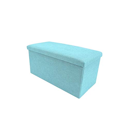 Rebecca Mobili Cassapanca Portaoggetti, Pouf Contenitore per Ordine Casa Camera Bambini, Azzurro Chiaro, Cotone - 37 x 76 x 38 cm (HxLxP) - Art. RE6581