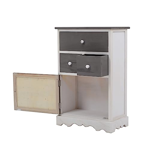 Rebecca Mobili Cassettiera bianca e grigia, armadietto con 3 cassetti, legno paulonia, stile vintage, per arredo cucina bagno ingresso - Misure: 72 x 47 x 30 cm (HxLxP) - Art. RE4327