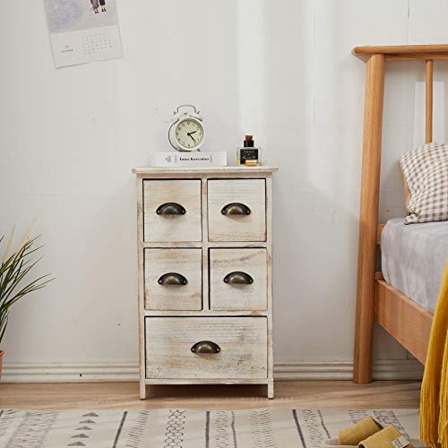 Rebecca Mobili Cassettiera 5 cassetti, comodino bianco, per camera da letto bagno, legno paulownia - Misure: 66 x 40 x 30 cm (HxLxP) - Art. RE4106