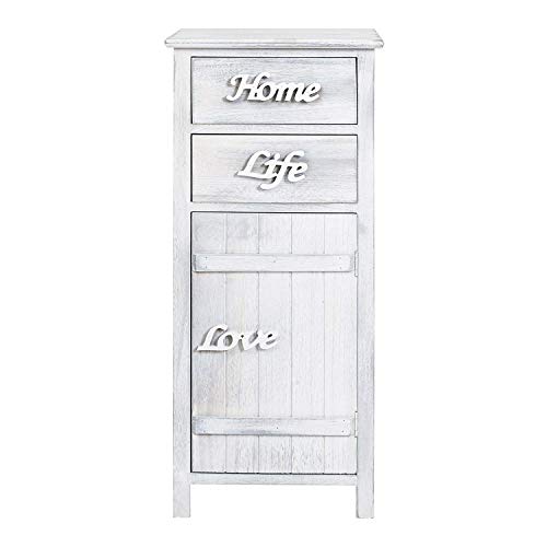 Rebecca Mobili Comodino Con 2 Ante, Mobiletto Credenza Da Terra, 3 Ripiani Interni & Armadietto In Legno 2 Cassetti 1 Anta, Paulownia, Bianco Shabby