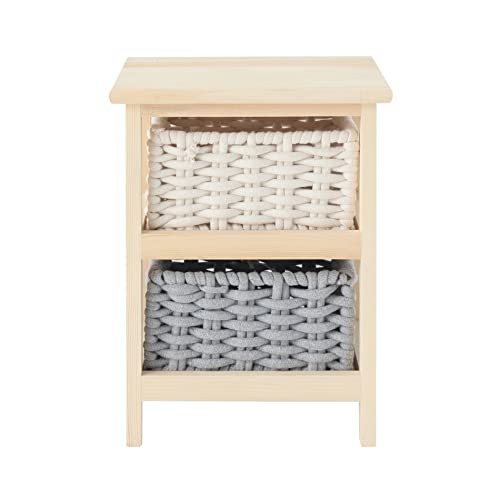 Rebecca Mobili Comodino 2 Cassetti, Cassettiera Montata, Legno Pino Cotone, Contemporaneo, Beige Bianco Grigio, Montato, Camera Da Letto Bagno - Misure: 41 x 30 x 25 cm (HxLxP) - Art. RE6665