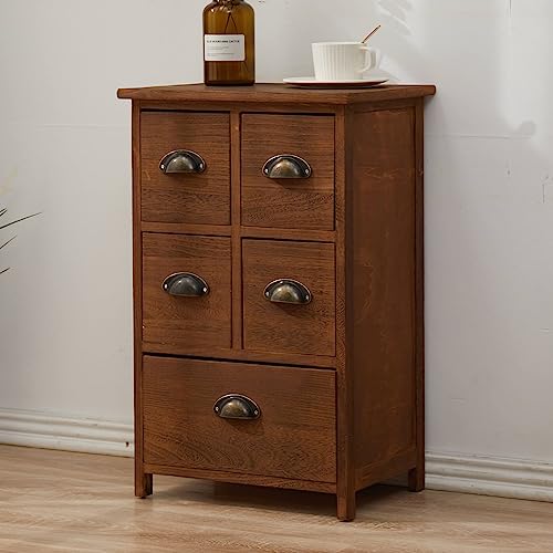 Rebecca Mobili Comodino Marrone, cassettiera Legno, 5 cassetti, Stile Vintage, arredo Camera da Letto Bagno - Misure: 66 x 40 x 30 cm (HxLxP) - Art. RE4107