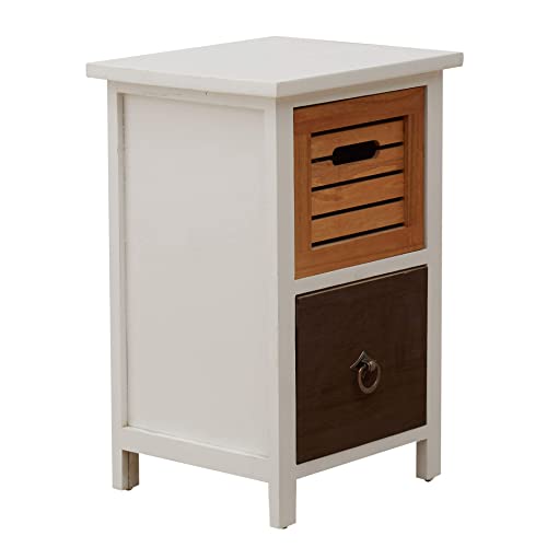 Rebecca Mobili Comodino Piccolo Bianco Marrone, cassettiera 2 cassetti Urban, Legno Marrone Bianco, Vintage Shabby, per Camera da Letto Bagno - Misure: 47 x 31 x 27 cm (HxLxP) - Art. RE4314