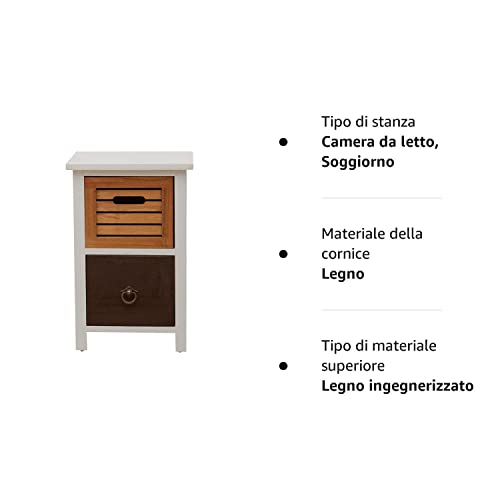 SPECIFICHE: Misure h 47 cm x l 31 cm x p 27 cm - Misure cassetti (2): h 18 cm x l 22 cm x p 23 cm - Colore: Bianco, Marrone, Legno naturale - Cod. RE4314