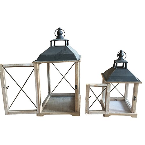 SPECIFICHE: Misure lanterna grande: H 57 cm x L 27 cm x P 27 cm - Misure lanterna piccola: H 41 cm x L 20 cm x P 20 cm - Colore: Legno chiaro, Grigio - Materiale: Metallo, Legno, Vetro - Cod. RE6232