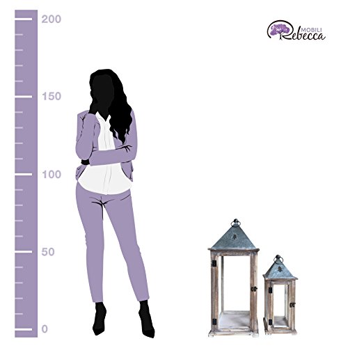 Rebecca Mobili Set 2 Lanterne Portacandela Legno Metallo Vetro Stile Vintage Fiori Candele Interno Esterno (Cod. RE6232)