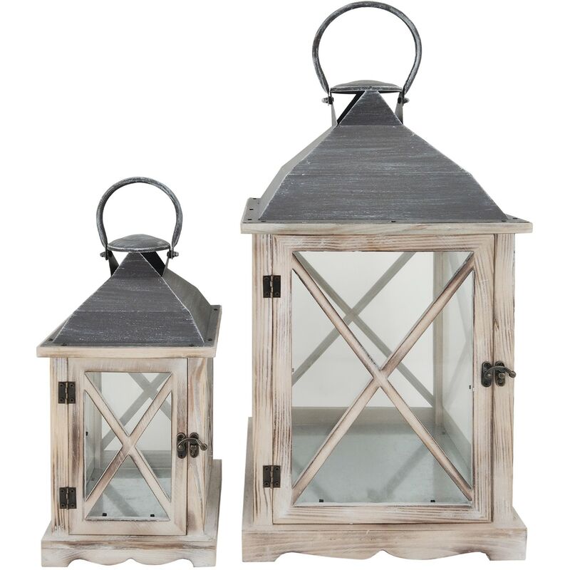 SPECIFICHE: Misure lanterna grande: H 52 cm x L 28 cm x P 28 cm - Misure lanterna piccola: H 37 cm x L 18 cm x P 18 cm - Colore: Legno chiaro, Grigio - Materiale: Metallo, Legno, Pvc - Cod. RE6216 - SET 2 LANTERNE: I portacandele Rebecca sono ideali per chi ama dei complementi d'arredo particolari. Puoi utilizzarle come lanterne da terra per abbellire ed arredare un angolo di una stanza. Sono lanterne grandi, che ti consentono di inserirvi all'interno una o più candele elettriche scegliendo il grado di illuminazione che desideri. Se ti piace la luce soffusa opta per un'unica candela. Se invece preferisci una luce più intensa utilizza un set di candele - UTILIZZALE COME LANTERNE PER CANDELE ELETTRICHE: Le lanterne Rebecca sono ideali in abbinamento a delle candele. Se utilizzi delle candele elettriche eviterai che la cera delle candele reali rovini l'interno delle lanterne. Inoltre con delle candele elettriche potrai decidere tu l'intensità della luce di volta. Una luce più intensa