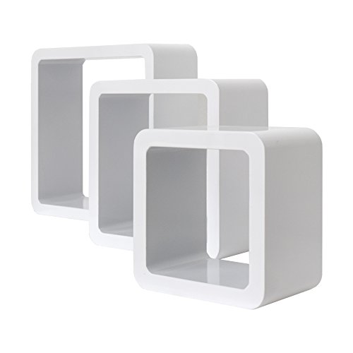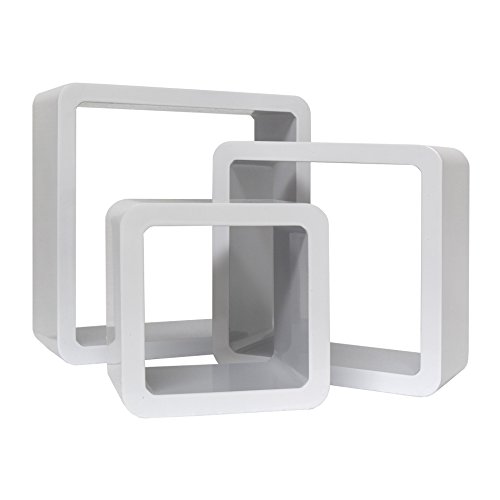 Rebecca Mobili Set 3 Mensole da Parete Quadrate Legno Bianco Grigio Urban Camera Soggiorno Salotto (cod. RE4131)