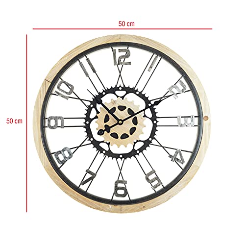 Rebecca Mobili Orologio Tondo Per Muro, Orologio Industrial, Mdf Metallo, Marrone Chiaro Nero, Arredo Ufficio Soggiorno - Diametro 50 cm x P 5 cm - Art. RE6591