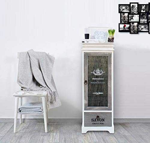 Rebecca Mobili Vetrinetta Armadietto Legno 1 Anta 2 Cassetti Design Retro Bianco Grigio Soggiorno Salotto & Vetrinetta provenzale, mobiletto 1 cassetto 1 anta, legno, bianco grigio