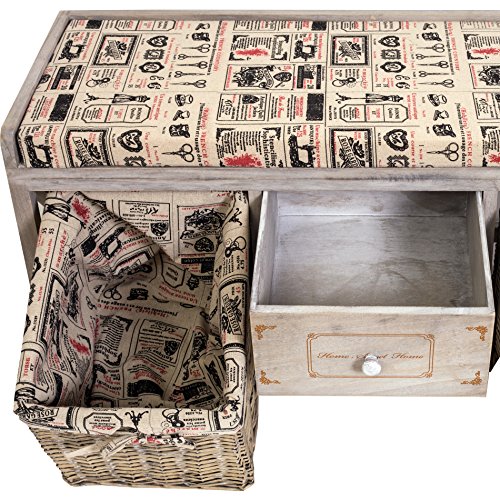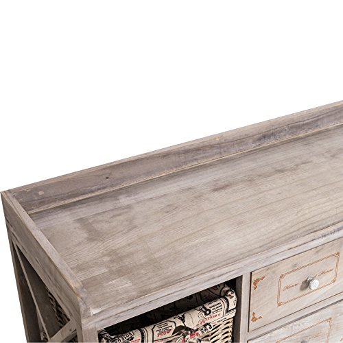 Rebecca SRL Panca Seduta 2 Cassetti 2 Ceste Vimini Legno Grigio Vintage Ingresso Living (cod. RE4748)