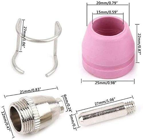 ● 【35 pezzi】 Questo consumabile per taglierina al plasma contiene 10 gusci di protezione in ceramica, 10 elettrodi, 10 ugelli e un anello di guida 5