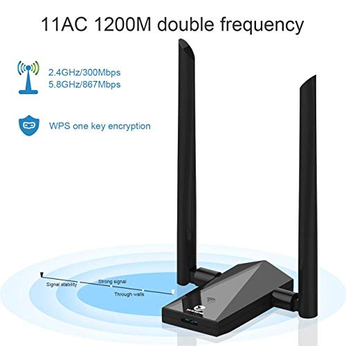 Recbot Adattatore USB Wi-Fi Dongle AC 1200 Mbps Doppia Banda 5.8 GHz/867mbps o 2.4 GHz/300Mbps, compatibile Avce Windows 2000/XP/Vista/7/8/10, Linux, Mac.