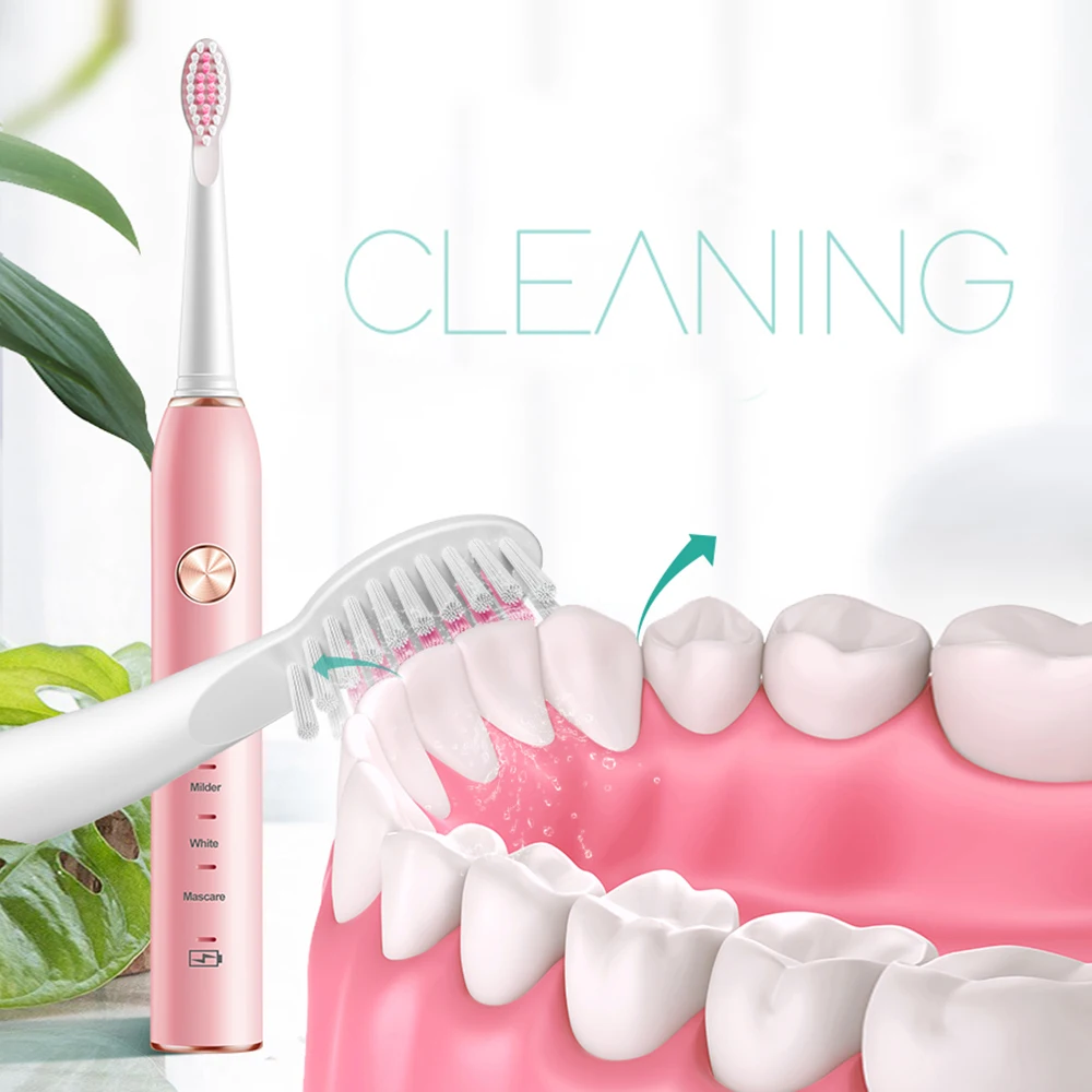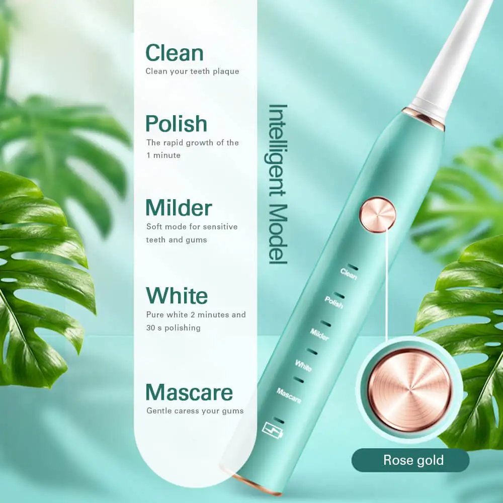 Rechargeable Sonic Electric Toothbrush with Replacement Toothbrush Heads 5 Modes Waterproof Ultrasonic Tooth Brush Adult