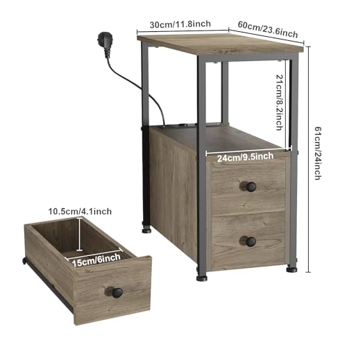 Rechebon Comodino con spina Comodini da camera da letto con 1 cassetti, tavolino ausiliario industriale per soggiorno camera da letto grigio