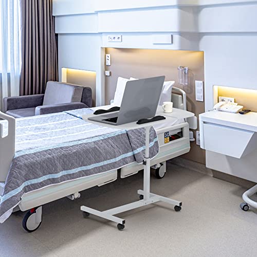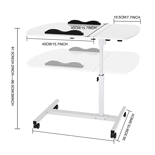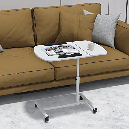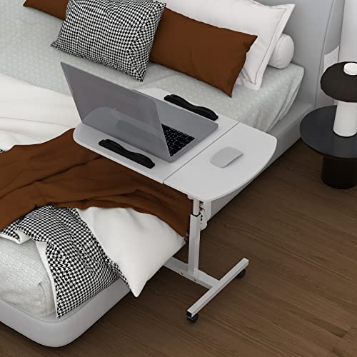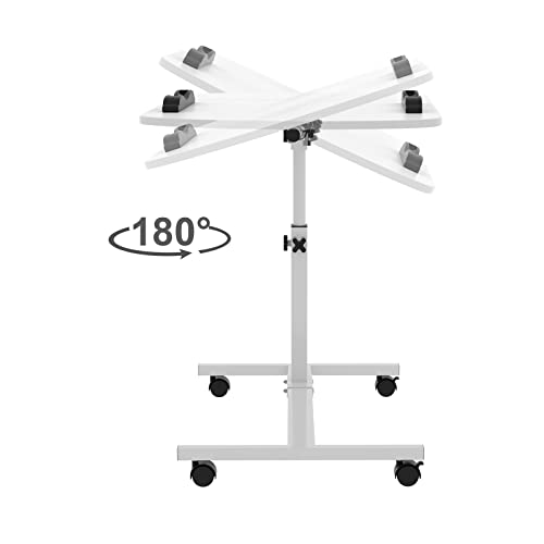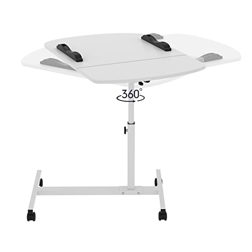 Rechebon Scrivania con ruote, scrivania per computer con ruote, regolabile in altezza, può essere ruotato di 180°, tavolino per camera da letto, soggiorno e cameretta dei bambini, bianco...