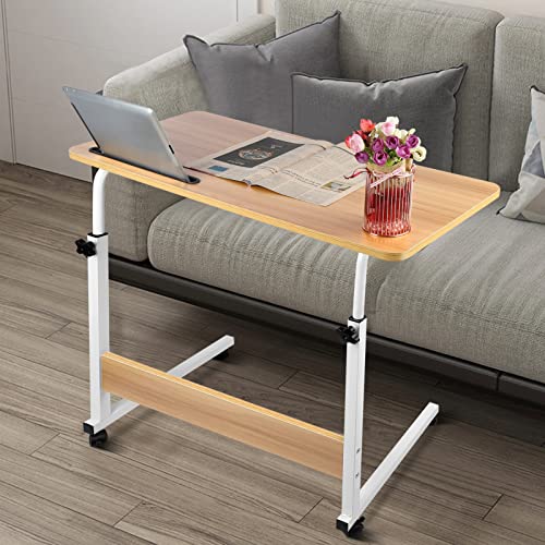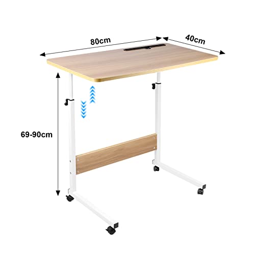 Rechebon Scrivania con Ruote, Scrivania per Computer con Slot per schede, Tavolini regolabile in altezza per Camera da Letto, Soggiorno, Reparti ospedalieri Marrone