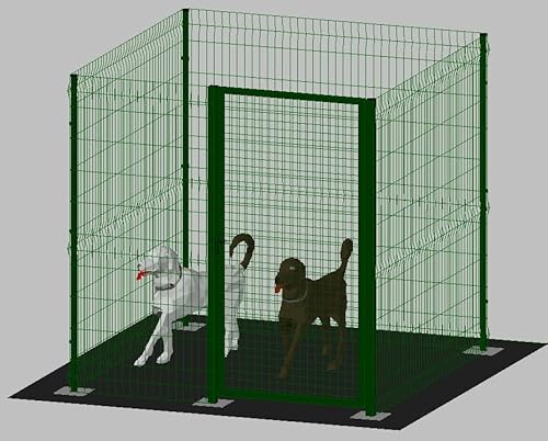 RECINTO-BOX MODULARE PER CANI IN FERRO ZINCATO E VERNICIATO VERDE-CON PALI A TASSELLARE - cm 200x200x122h