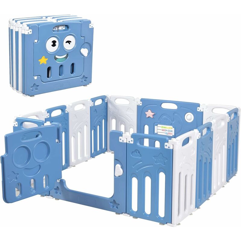 Materiali e Componenti Sicuri - La recinzione è realizzata con materiali sicuri ed ecologici con bordi lisci che possono proteggere la pelle delicata dei bambini. La porta esterna è dotata di serratura di sicurezza per impedire ai bambini di aprire accidentalmente la porta dall'interno. Con ventose antiscivolo e cuscinetti antigraffio, questo Box pieghevole può rimanere stabile sul pavimento per garantire attività sicure per i bambini. Spazio Perfetto per il Gioco e l'Apprendimento - Lascia che i bambini imparino divertendosi e c'è abbastanza spazio per soddisfare tutte le loro esigenze. La recinzione è ottima per far giocare, correre, gattonare e sdraiare i bambini. I pannelli decorati con illustrazioni stimolano la curiosità dei bambini e li incoraggiano a sperimentare il mondo dei colori. Con un pannello che gira, abaco con perline e pentagramma sonoro, può esercitare le capacità cognitive e motorie dei bambini. Un Buon Aiuto per i Genitori - I genitori possono osservare il