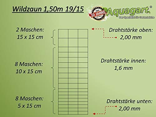 Lunghezza dei pali: 2,0m / Altezza della rete: 150cm / Tutti i pezzi zincati / Montaggio semplice