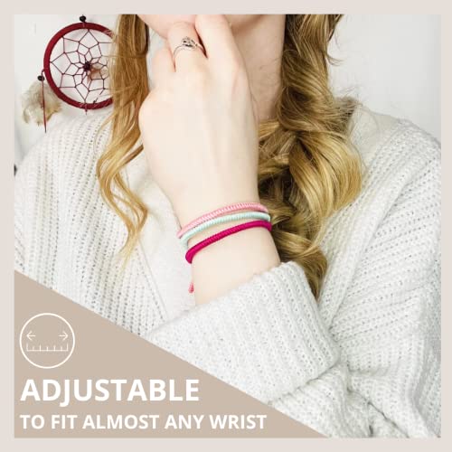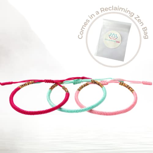 Reclaiming Zen Bracciale Buddista Tibetano Con Nodo Della Fortunato Fatto a Mano (Set di 3 Pezzi - Rosa Profondo, Menta, Rosa Chiaro)