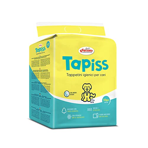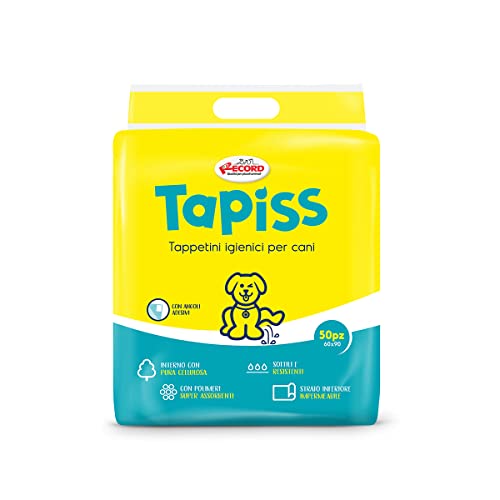 Record Tapiss Traverse Cani USA e Getta per Cani Unisex. Extra assorbenza. Tappetini igienici per Cani 60x90cm. Confezione 50 pz. Monouso, Antistrappo e Antiodore. per Cani di Taglia Media e Grande