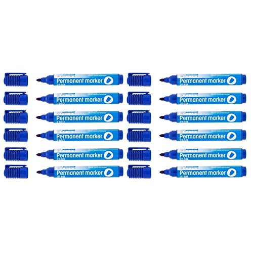 D.RECT 2160 - Pennarello indelebile impermeabile con punta tonda per molte superfici, 12 pezzi, colore blu