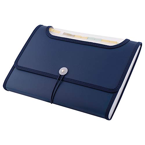 D.RECT 5590 Cartella portadocumenti espandibile | 12 scomparti, formato A4 | Chiusura con cordino elastico | Colore blu navy