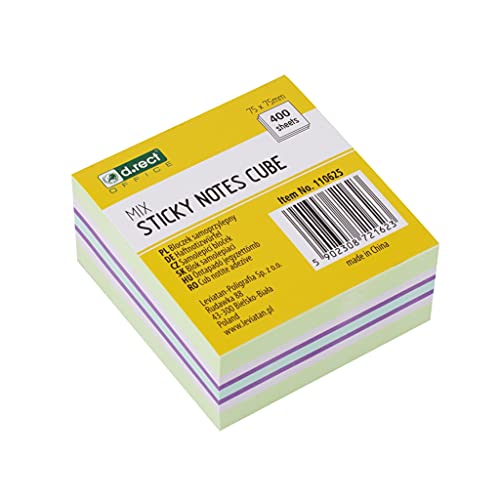 D.RECT | Foglietti Adesivi | Set di 1 Pezzi | 75x75mm | Note Adesive | 1x400 un Blocco di Fogli | Forniture per Ufficio | Colori Pistacchio