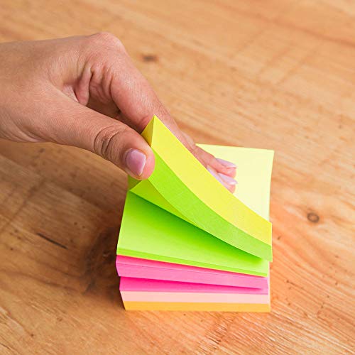 D.RECT | Foglietti Adesivi | Set di 1 Pezzi | 76x76mm | Note Adesive | 1x400 un Blocco di Fogli | Forniture per Ufficio | Colori Neon